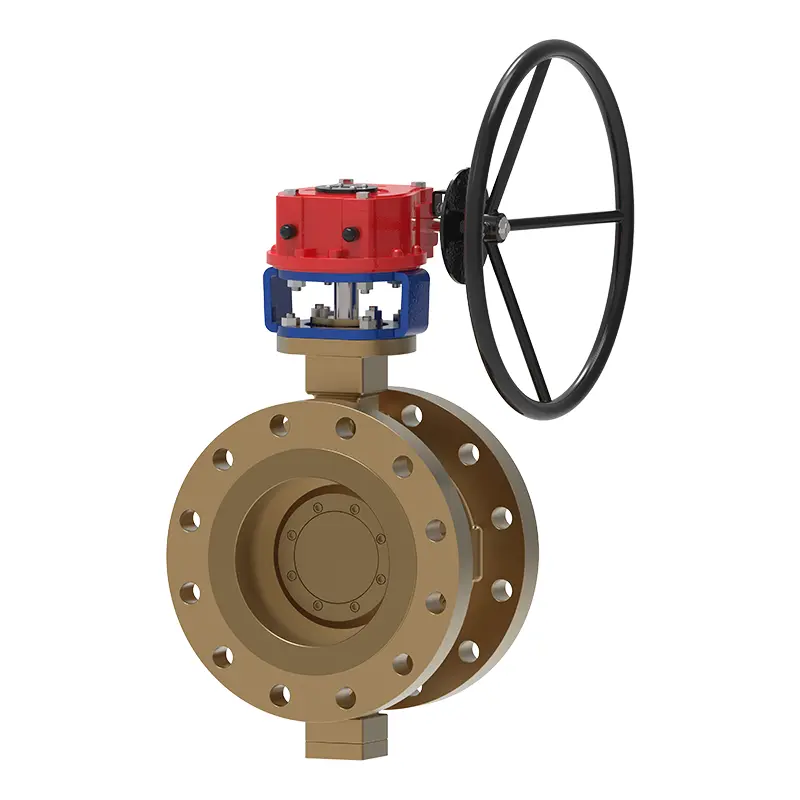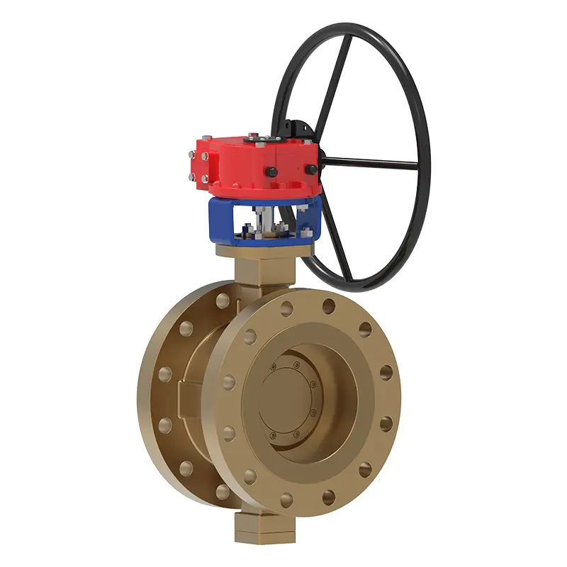Brązowy potrójnie ekscentryczny kołnierz motylowy jest odpowiedni do obróbki wody morskiej w operacjach olejowych i gazowych i jest trwały.