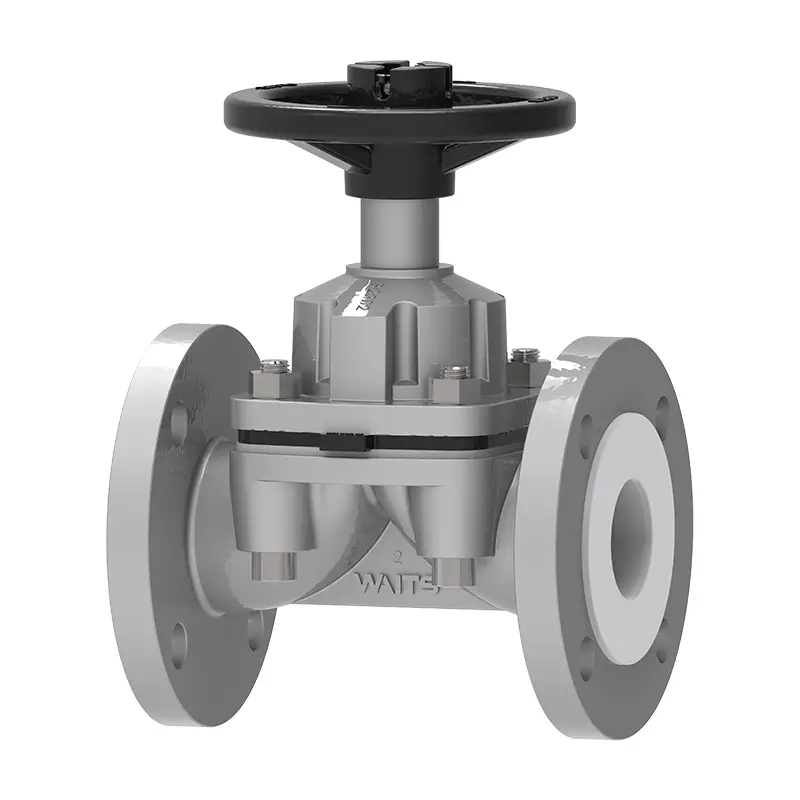 Waits zawór przepony PTFE zawór przepony jest odpornym na korozję i trwałym zaworem, który izoluje pożywkę od części metalowych przez fluoroplastyczną przeponę i osiąga otwieranie/zamykanie i uszczelnienie przez elastyczną deformację przepony. Nadaje się do kwasów, chloru, chlorowanej wody i roztworów, wody dejonizowanej, soli, roztworów alkalicznych, wapna i chemikaliów miedzianych. Nasz produkt ma bez wnęki, niski projekt emisji i uszczelnienie łodygi bez szczelności. Wskaźnik pozycji. Części mechaniczne są izolowane z płynu.